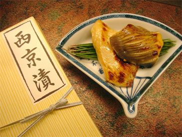 (右)魚を漬ける西京味噌です! 京都のお味噌で少し甘めで塩分 が少ないので味噌漬けには ぴったりです。これに魚を 漬けお包みします。 |
