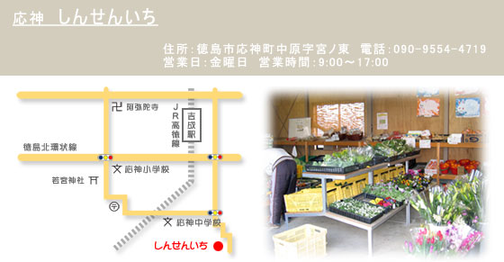 | 応神町産のものを商品として扱っており、めずらしい野菜などいろいろなものを栽培しています。 |